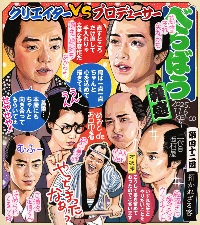母つよが亡くなるも、蔦重は売上を好調に延ばして身上半減を返上、書物問屋まで始める。さらには妻ていが身ごもり、さらに気合が入る。 看板ブームが起き、蔦重は歌麿の意思に関わりなく話を広げ、両者の亀裂は修復不可能なところまで広がっていた。 #べらぼう #招かれざる客 kassy4503505075642.cocolog-nifty.com/blog/2025/11/p…
