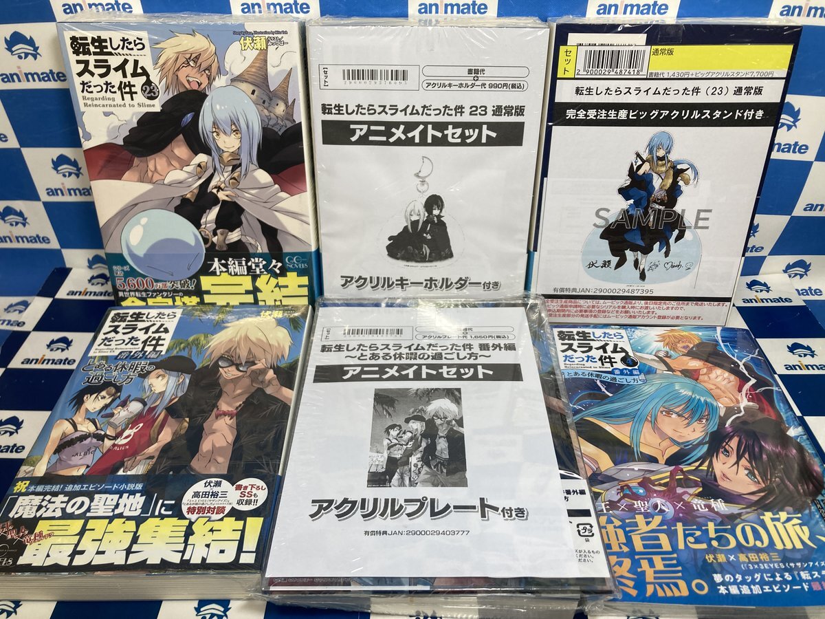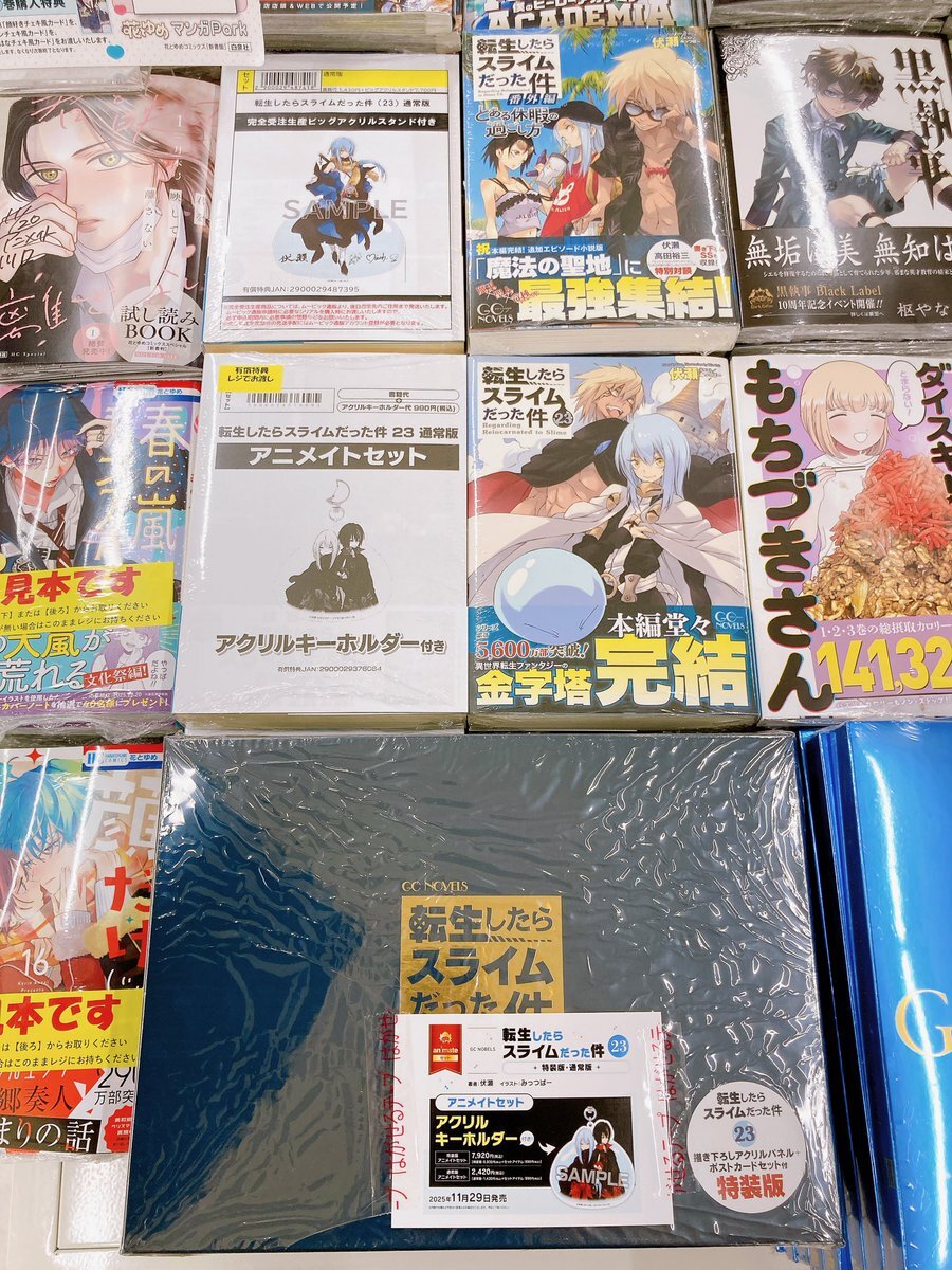 📚#新刊 情報📚 🔸転生したらスライムだった件(23) 特装版/通常版 アニメイトセット 本日入荷しました‼ アニメイトセット仕様:【アクリルキーホルダー付き】 特装版 及び各アニメイトセットはご好評につき予約満数となっております。店頭販売分はございません。 ぜひ当店でお買い求めください💕 pic.x.com/OJYumWfkjI