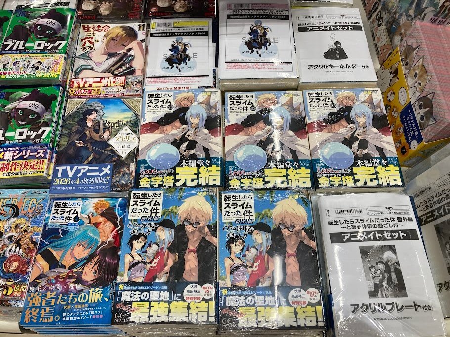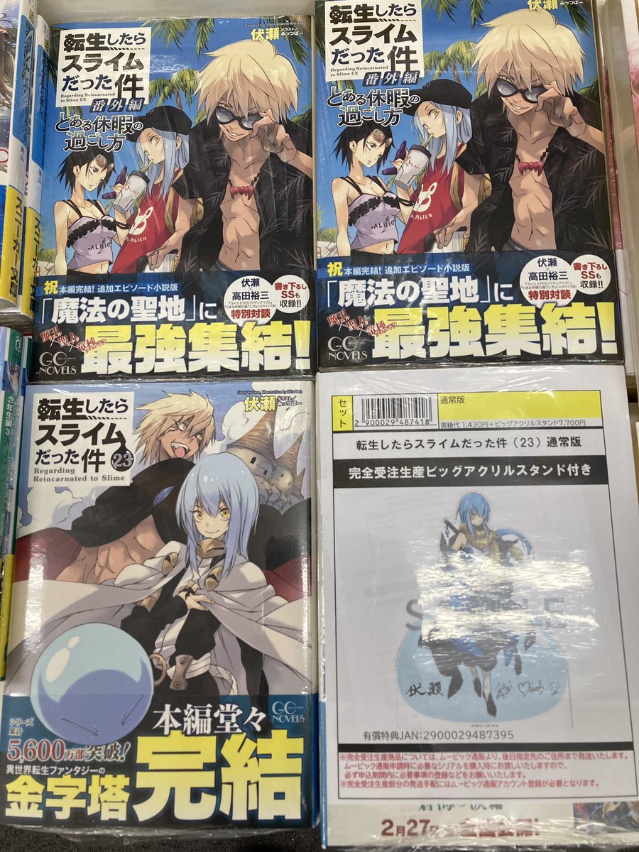 【書籍入荷情報】 「転生したらスライムだった件(23) 通常版」 「アニメイトセット【複製サイン入り描き下ろしビッグアクリルスタンド購入用シリアル付き】」 「転生したらスライムだった件 番外編 ~とある休暇の過ごし方~」 が入荷しましたがぁて‼️ ご希望の方はお見逃しなく✨ pic.x.com/rjAQmPD6oO