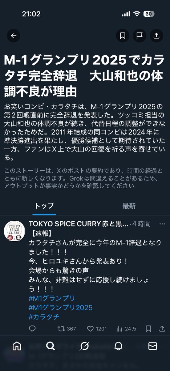 せっかくここまで来たのに残念。 出場する当人ではなく部下のヤラカシでの辞退とは#M1グランプリ2025 x.com/YahooNewsTopic…