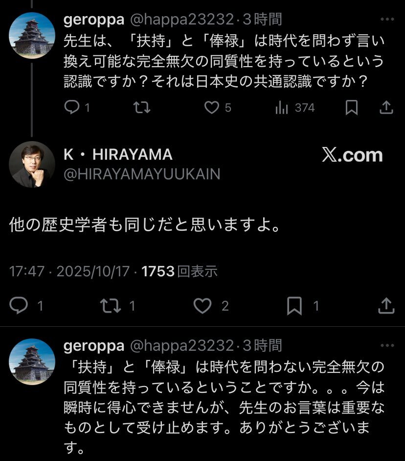 返信先:@HIRAYAMAYUUKAIN長文申し訳ないですが私めは平山先生のお時間を削っての文章を読む権利を辞退させていただきたいです。せめて熱心なフォロワーの皆様に「他の歴史学者」の実例をお伝えください。