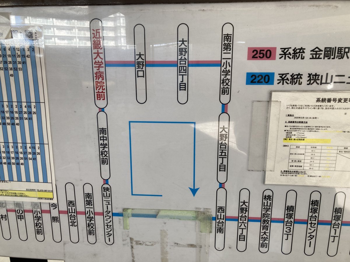 昨晩 近畿大学病院移転に伴うバス停変更の絡みか、パネル張り替え作業してました(`・ω・´) #南海バス pic.x.com/7lTW7Ly1PG x.com/s_tada_/status…