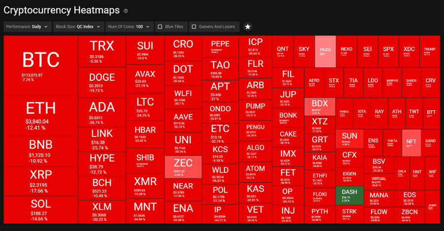 暗号資産が暴落しました💥 原因は、トランプ大統領が中国に100%の追加関税、全ての重要ソフトウェアに輸出規制を導入すると発表したことです 昨日高値からの最大下落率 ビットコイン -15.8% イーサリアム -21.6% XRP -51.5% クリプトほぼ全部暴落 主要アルトコインの最大暴落はトンコインの-79.2% pic.x.com/m5EyO7LCHL