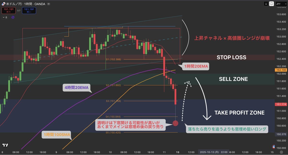 ⚠️窓開け展開の場合の戦略も記載してます⚠️ ドル円は一時151円前半まで下落しました。 きっかけは"トランプ砲"対中強硬発言です。 中国がレアアース輸出を規制したことに対し 「11月1日から中国に100%の追加関税を課す」と発言。 pic.x.com/D8yyuZyL2A x.com/nikkei/status/…
