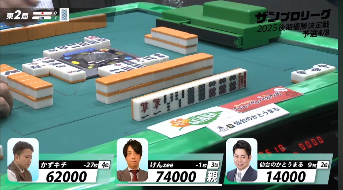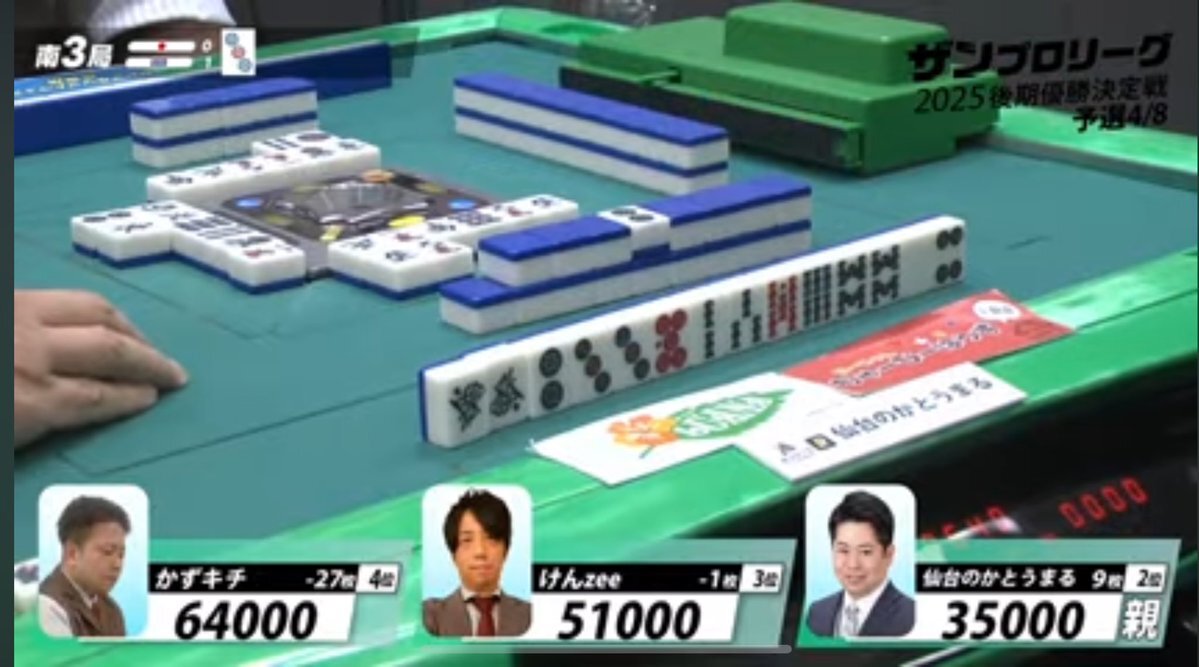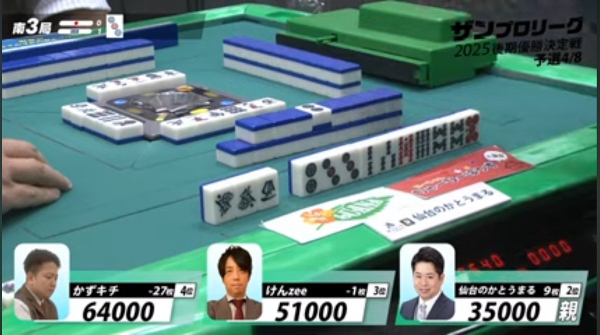 【七対子ケア】 南ポンの後、6s4pが手出しされ、西でリーチ。 これを受けて、瞬間47sターツができたものの安全に現物進行。 トイトイ意識よりも七対子警戒の意味が強そうで、特に ①メンツ手なら6s4pより西が早そう ②小四喜ケアで西を合わせてない (西暗刻からのメンツ手両面はあり得る) #ザンもに x.com/mony_allgreen/…