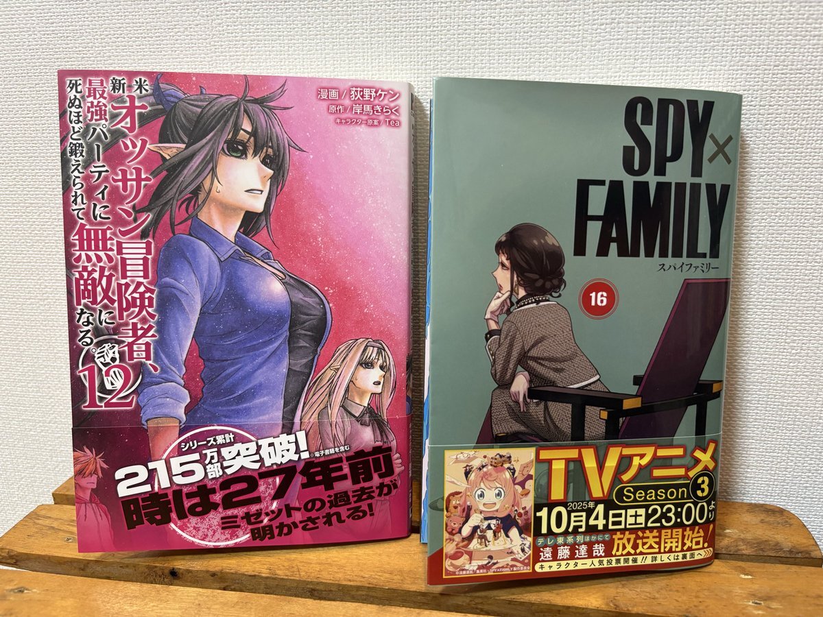 SPY×FAMILY16巻 メリンダさん関連の話、面白くて好き(・ω・`) 大人のちょっと闇匂わせ話を、ちょっとコメディ混ぜてる時が好きなんす 新米オッサン冒険者12巻 確かに過去編で1巻はやり過ぎだと思う(・ω・`) 敵の実力が上がっていくのを、初期の小気味良いギャグ以外でどう魅せるのか楽しみにしてる pic.x.com/LWvBeXfT8r