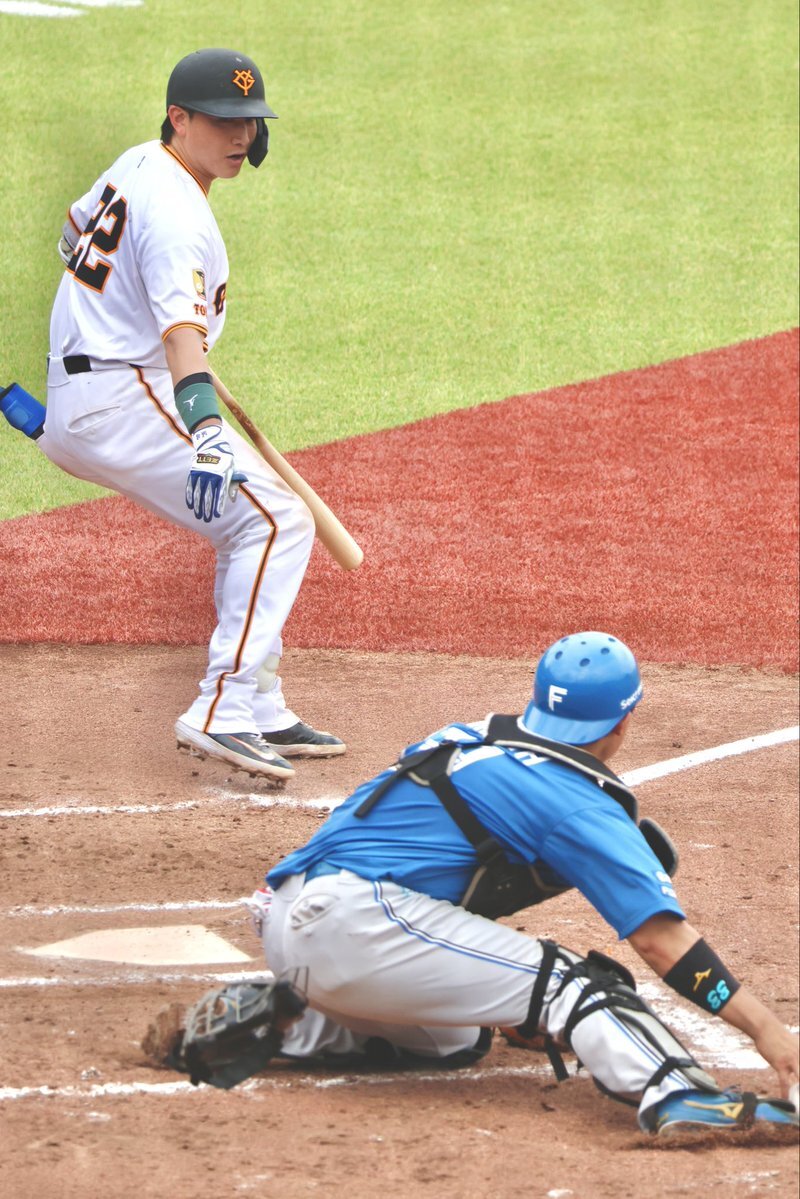 以前の規定で出せなかったシゲさんのホームイン スクイズ外されてもタッチをかわし、きっちりホームに入ってくる速さに感動した 2025.4.25 イースタンリーグvs 日ハム #giants #重信慎之介 #小林誠司 pic.x.com/pYWhxMmhgI