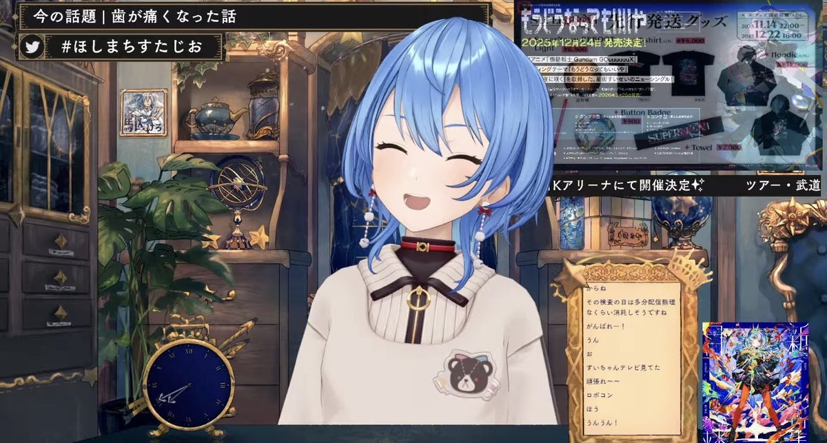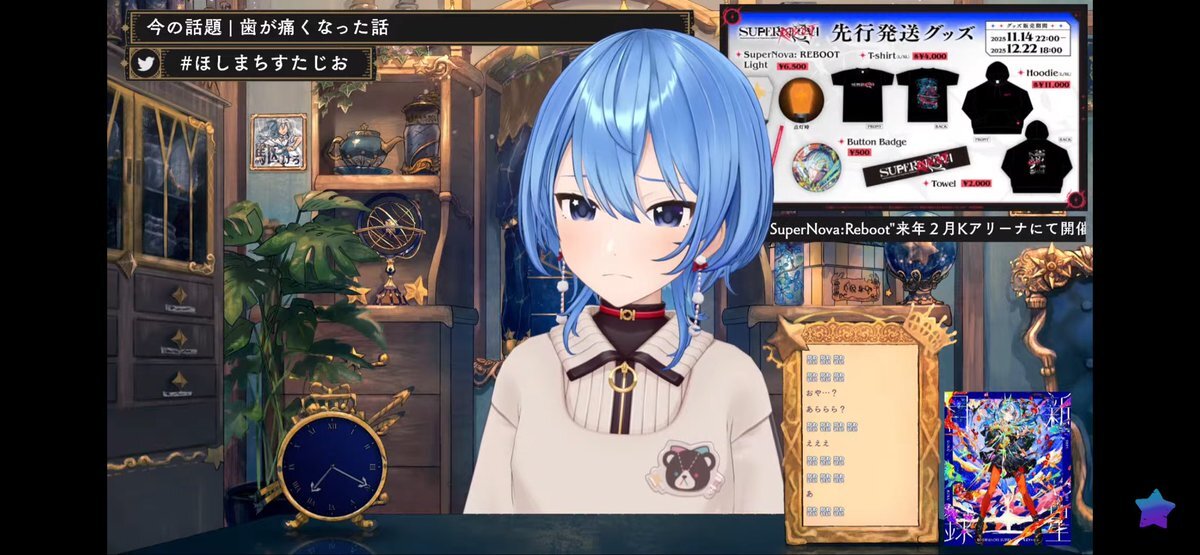 雑談(重大歯表)おつまち〜! あずきちのライブ、ゲスト出演の裏話などなどありがとう〜! 虫歯では、無かったけど歯もお大事に! お疲れ様でした〜! #ほしまちすたじお pic.x.com/KkwI1RuSaj