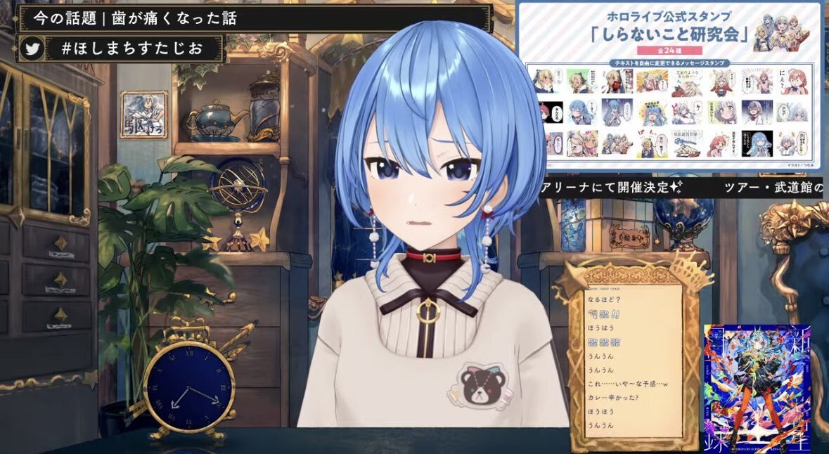 重大歯表(雑談)配信おつま~ち!☄️ まずは、すいちゃんの歯が大事に至らなくて安心したよー…とはいえ噛む力が強いっていう事実には驚いたw あずきちライブのこと、明太子コラボとか、裏話も聞けて楽しかったよー! #ほしまちすたじお pic.x.com/FK7g804Zq5
