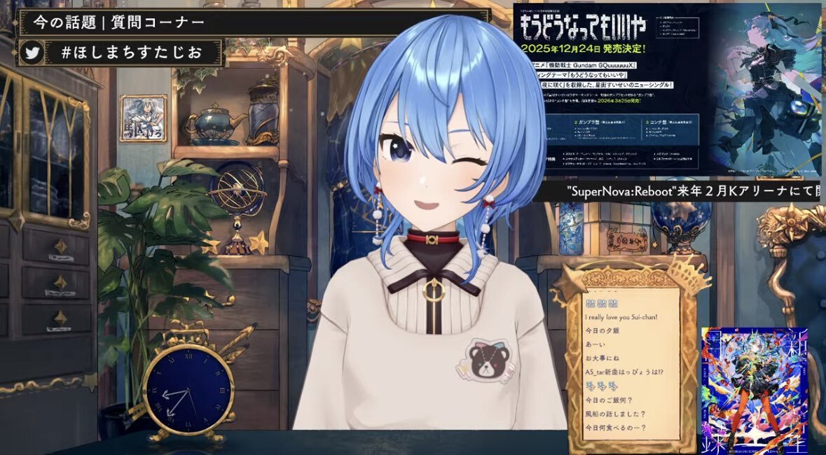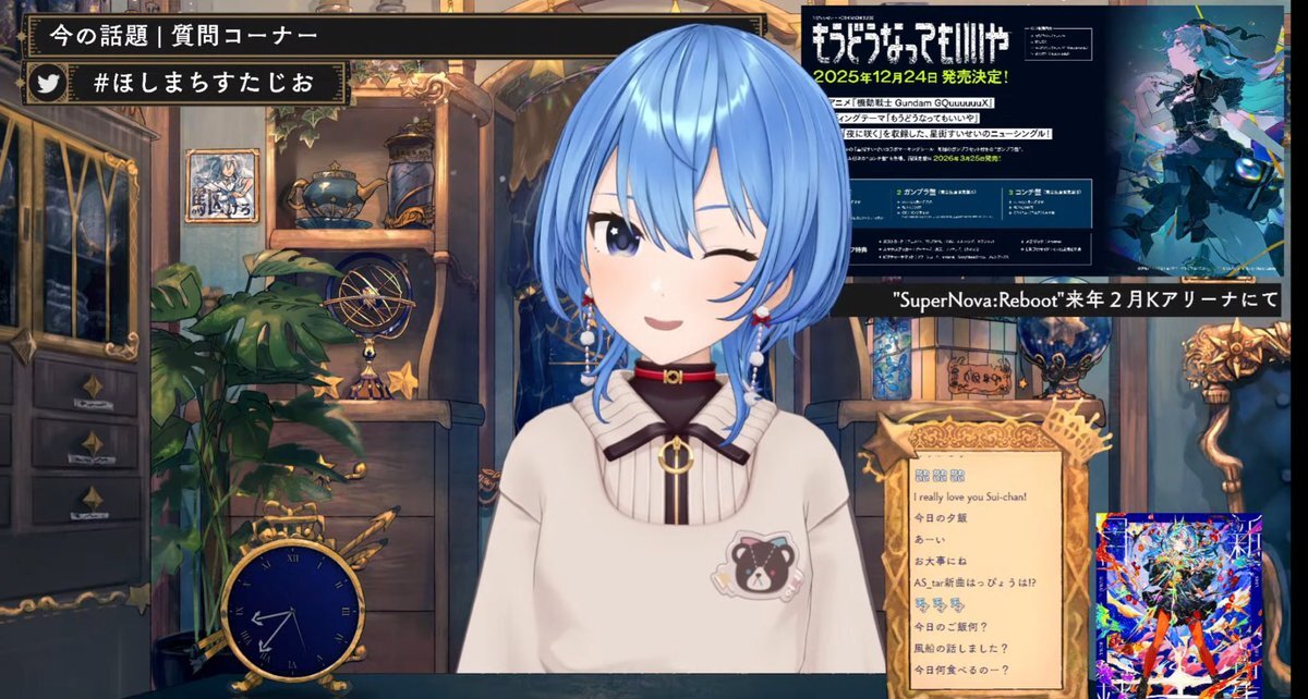 すいちゃん『雑談&重大歯表』配信おつま〜ち☄️✨👏👏👏 あずきちソロライブでの裏話を聴けたり色々な表情のかわいい☄️楽しかったです!✨ ☄️🦷は食いしばりからの知覚過敏かぁ~寝てたらわからないもんね…🥲☄️お大事にです…✨🙏✨ 皆様✨どっから明太子戦争頑張りましょう!✊w #ほしまちすたじお pic.x.com/FWvb1MNCfj x.com/suisei_hosimat…