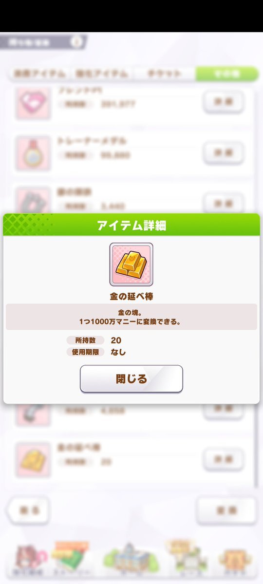 ウマ娘のアイテムに金の延べ棒、そこは「銀行口座へ入金」とか「金庫へ保管」とかもっとええやり方あったやろ!
