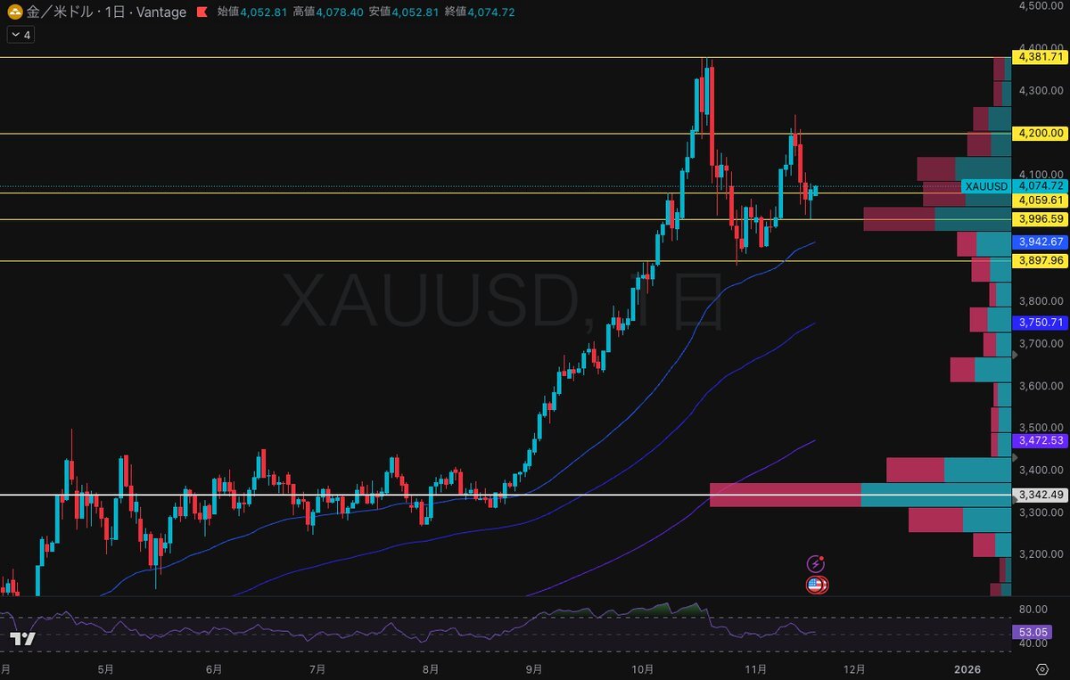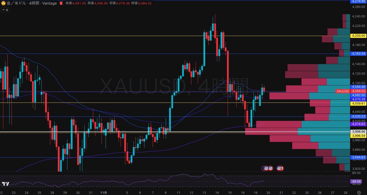 📝【11月19日 ゴールド XAU/USD相場考察】📝 「戻り売りか、ブレイク待ちか」今の判断次第で週明けの展開が変わります 「ここで買いたい気持ちもあるけど…次の一波が怖い」 今のあなたの心理はまさにこの状態かと思います。 戻りの上昇が入っているものの、まだ完全に安心はできない局面。
