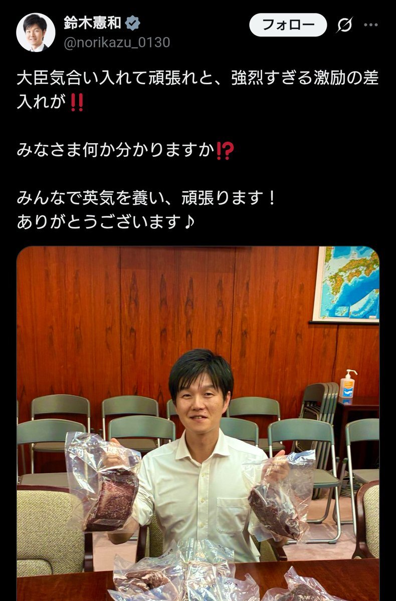 就任1カ月。就任直後はたくさんあった「鈴木農相優秀説」も最近あんまり見なくなったな 鈴木憲和農相 高値続くコメ価格「私たちにコントロールする権限が全くない」 おこめ券効果に期待(スポニチアネックス) #Yahooニュース news.yahoo.co.jp/articles/10bd8…