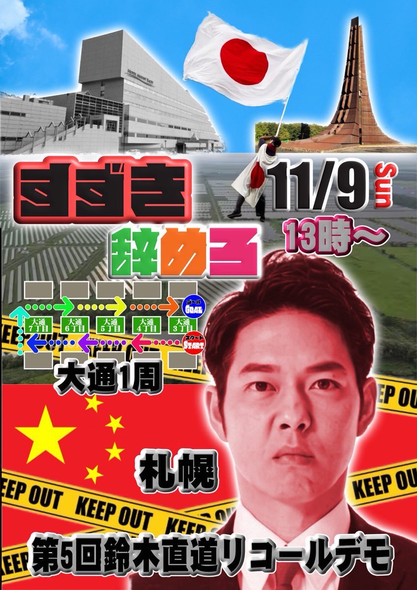 返信先:@airdo_hokkaido#北海道 #札幌 #鈴木知事リコールデモ #移民反対 #移民政策 #JICA解体 #NAGOMi解体 #ソーラーパネル反対 #デモのお知らせ 11/9【13:00~】 場所: 大通り公園3丁目 x.com/usagidesyo/sta…