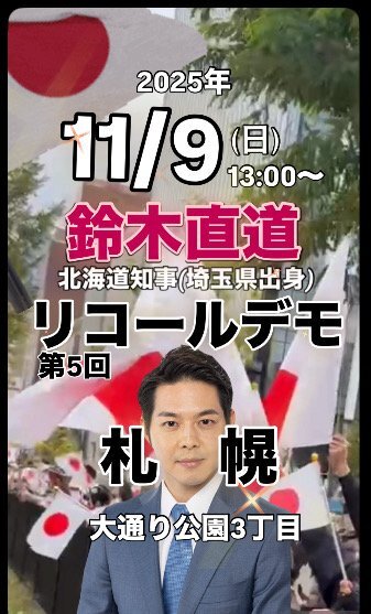 返信先:@bcfe70bord#大谷翔平 #ひき逃げ #北海道 #札幌 #鈴木知事リコールデモ #移民反対 #移民政策 #JICA解体 #NAGOMi解体 #ソーラーパネル反対 #デモのお知らせ 11/9【13:00~】 場所: 大通り公園3丁目 x.com/usagidesyo/sta…