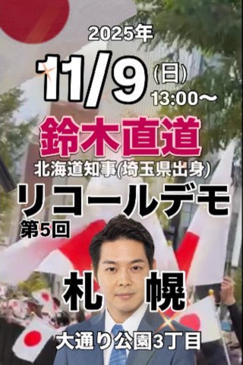 拡散希望 道民の手で鈴木直道を知事の座から降ろそう #鈴木知事リコール #鈴木知事は北海道から出ていけ #鈴木知事は独裁者 #鈴木知事リコールデモ x.com/WAKU0666/statu…