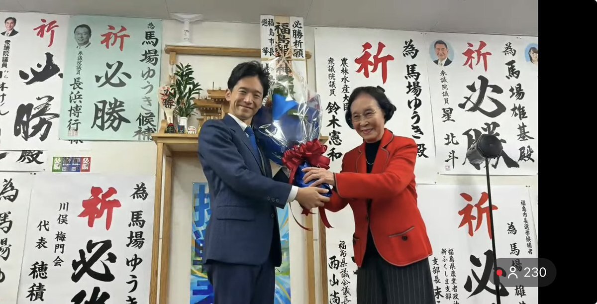 返信先:@TomoMachiNHKの全国放送で福島市長選挙を報道している 映像をよく見ますと元立憲民主党衆議院議員の 事務所に高市総理内閣の鈴木農林水産大臣が 為書を出したのか貼ってありました。 自民党、立憲民主党も分裂をした選挙だったのではと 思われます。