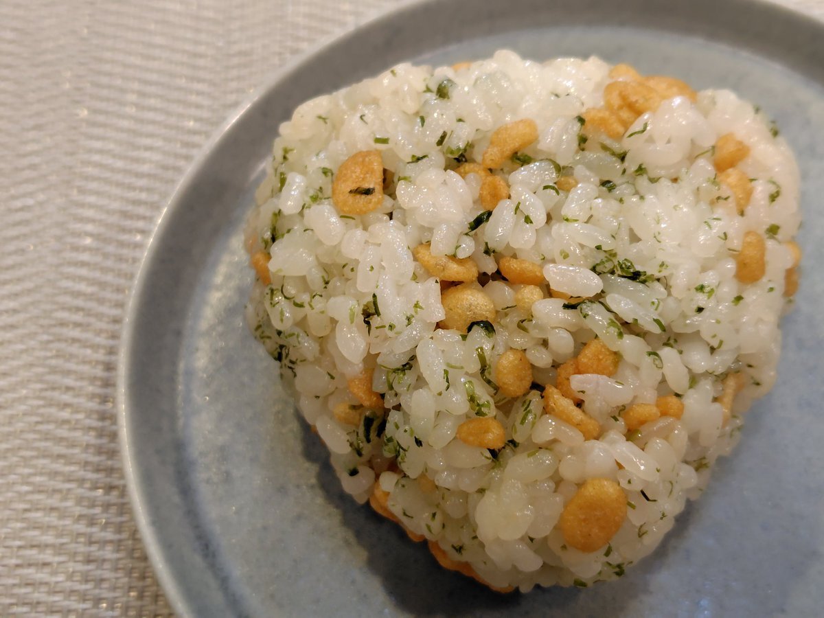 作る過程を撮り忘れているという痛恨のミス… 材料 白飯 天かす 青海苔 出汁醤油 出汁醤油は鎌田のだし醤油(鎌田醤油株式会社 本社 香川県坂出市)をよく使います ①天かすに出汁醤油をかけて軽く浸す ②白飯に青海苔を混ぜる ③ ①と②を混ぜておにぎりに #悪魔のおにぎり pic.x.com/hHMiXnpjpI