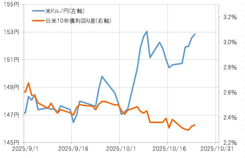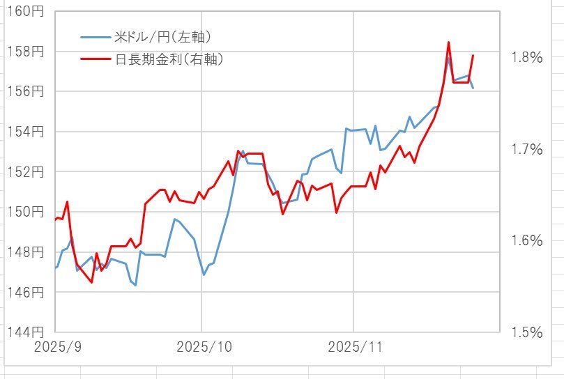 高市トレードとトランプトレードは金利差との関係が全く違う。 金利差で説明できない高市円安を説明できそうだったのは債券価格下落(長期金利上昇)。どうやら消費税減税もやらない見通しとなり、債券価格下落が転換し始める中で高市円安は続くのだろうか? pic.x.com/ykVYyVSwoF