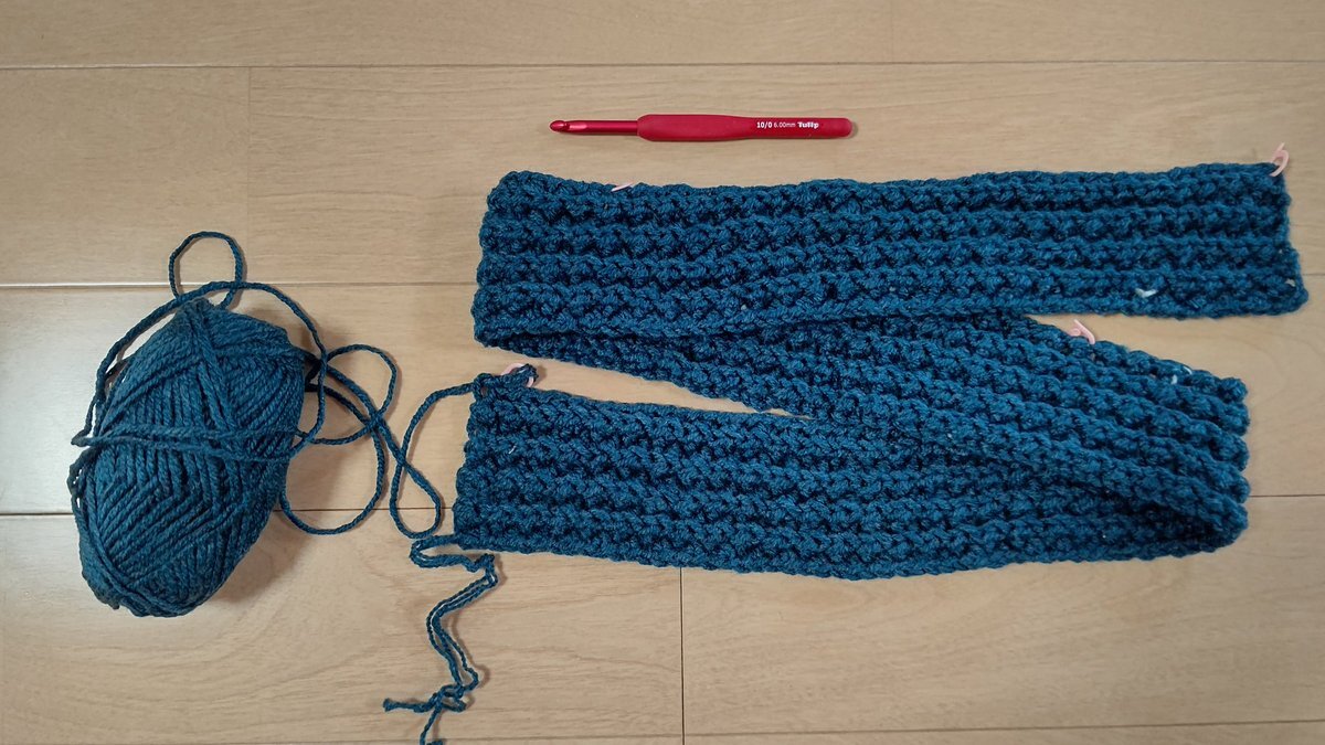 ちな、私用は190目鎖編みで作ってから中長編みと引き抜き編み。妹用は160目で。 完成楽しみ!寒くなる前に仕上げたい😃 そのつぎに「ニッタオル」が待っている!!ww pic.x.com/C2ICDePjVh