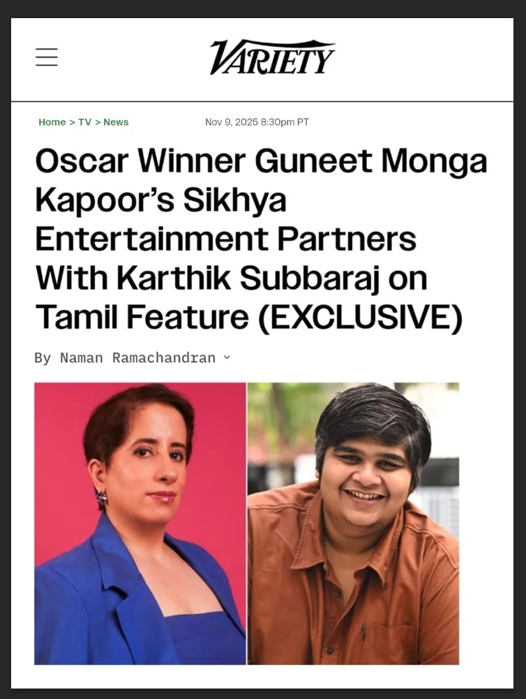タミル語映画界の注目監督カールティク・スッバラージ(『ジガルタンダ・ダブルX』)と、アカデミー賞短編ドキュメンタリー映画賞受賞作『エレファント・ウィスパラー 聖なる象との絆』を手がけたプロデューサー、グニート・モンガー(『KILL 超覚醒』)が、タミル語長編作品でタッグを組むようだ。 x.com/guneetm/status…