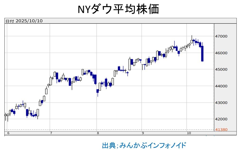 『アメリカ株価が急落!!10月14日からの日本の株式相場はどうなる??!』 10月10日のニューヨーク株式市場では、 中国への追加関税引き上げを巡る トランプ氏の投稿を受け、 ダウ平均株価(30種)の終値は 前日比878・82ドル安の 4万5479・60ドルに下落した。 pic.x.com/vaZVIJOJuK