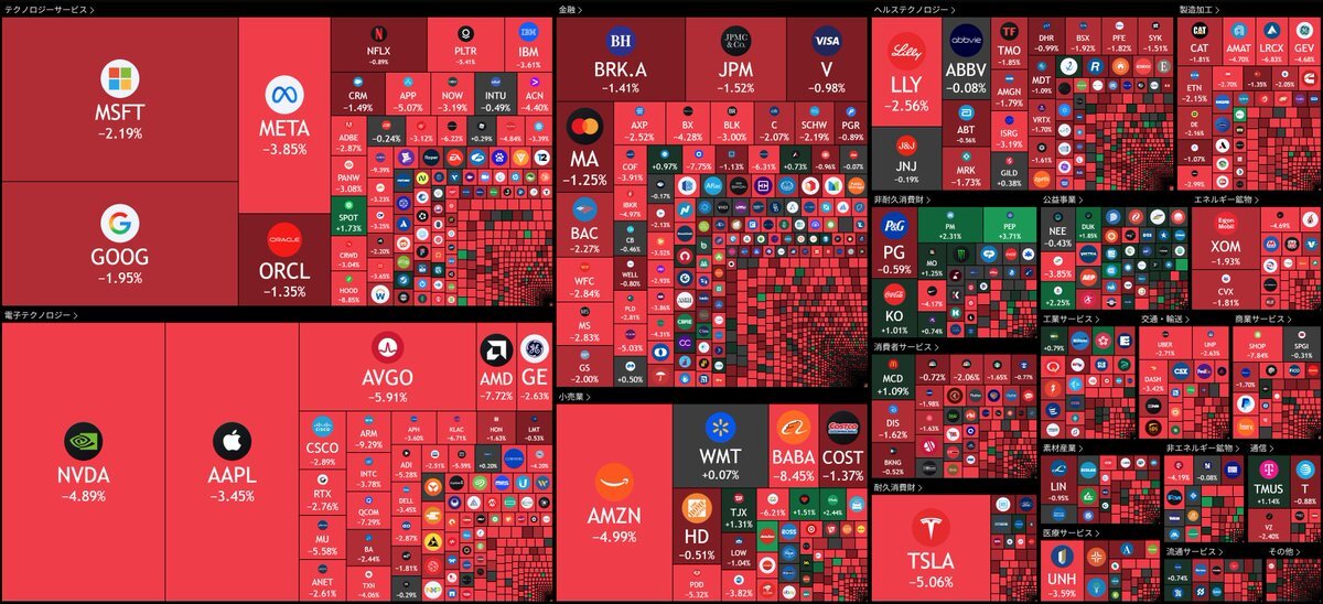 【昨夜の米国株、急落の理由】 ウォール街に衝撃が走りました。S&P500は-2.7%と、今年4月以来最大の下げ幅を記録。 ダウは878ドル安(-1.9%)、ナスダックも-3.6%と大幅下落。 ■急落の要因 ① トランプ大統領の対中関税引き上げ発言 pic.x.com/aQgPotSfJ3