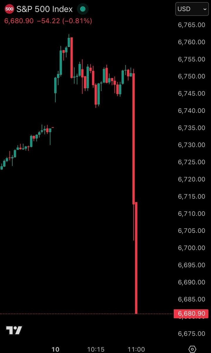 🚨 US markets crash after Trump.threatens to raise US tariffs on China! At 10:57, Trump threatened to hurt US importers with higher tariffs on Chinese goods. By 11:00 the S&P 500 had lost $700 BILLION! US investors understand how reliant the US is on Chinese goods. Source: