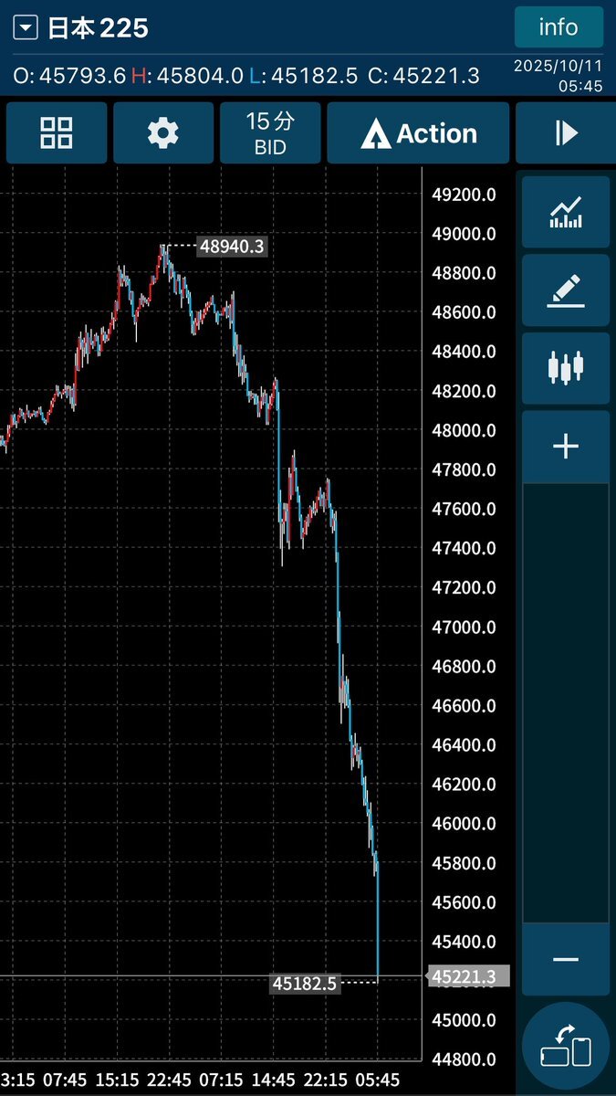トランプの対中関税引き上げによる米中関係悪化懸念を受け、日経平均先物が3,000円弱、6%程度下落してる。 一見大きく下げてるように見えるけど、この水準って高市総裁誕生直前の水準。仮に倍の6,000円下げたとて、9月初の水準。 短期の過熱感凄いな。