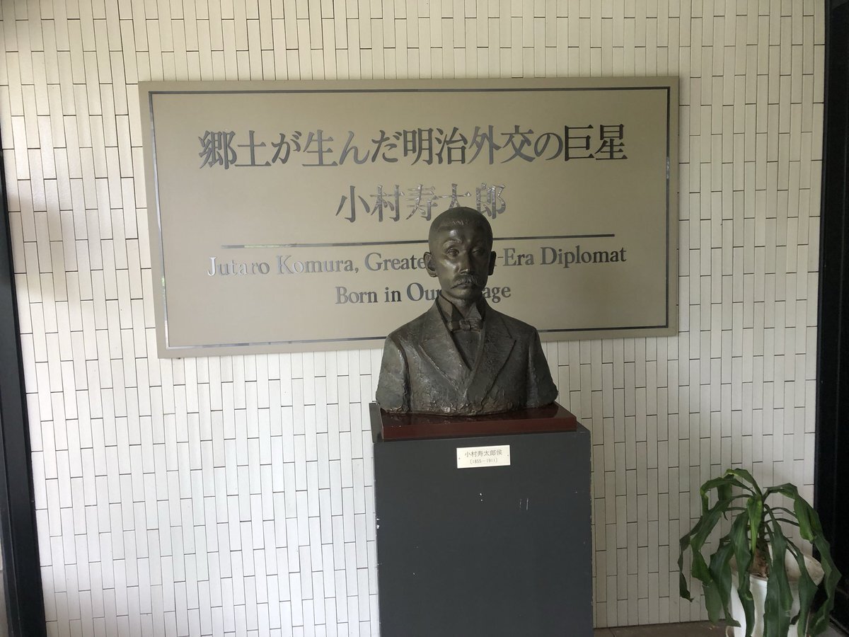 その次は小村寿太郎記念館に行った。関税自主権の回復に貢献したことで有名な小村寿太郎さんはここ飫肥で育った。施設でゆっくりと展示を見たいところではあったが時間の都合で、館の入り口付近にあった帯出身の著名人や名産品についてのコーナーを見ることしかできなかった。 pic.x.com/0Vk18QGxUt