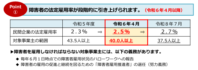 障害者の法定雇用率の引上げと支援策が強化💡 「共生社会」実現のため、民間企業の法定雇用率は2.3%から段階的に2.7%へ(R8.7~)。対象事業主の範囲も拡大! 毎年6/1時点の雇用状況報告、障害者雇用推進者の選任(努力義務)も必須です。最新情報をチェック! ▼詳細はこちら mhlw.go.jp/content/001064… pic.x.com/P8yzkqr9AC x.com/Kaiketsu_J/sta…