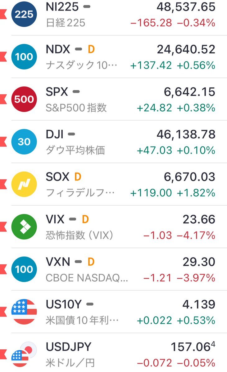 今日の日経。アメリカの政府機関閉鎖継続、CPI、雇用統計発表見送り、Nvidiaの決算がどうも良くない見通しからダウ、ナスは大きくダウン、日本ではキオクシア、レゾナックの良くない決算で利益確定モード、500円以上は下落の見通しです。(;_;) pic.x.com/R0sqNSkP7a