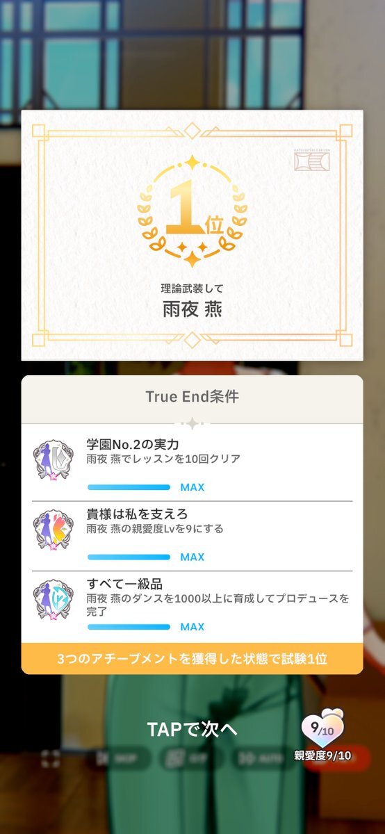 True End2回で達成したんだけど、達成条件早くなった? #学園アイドルマスター #学マス #雨夜燕 pic.x.com/6PyDrR1Dbp