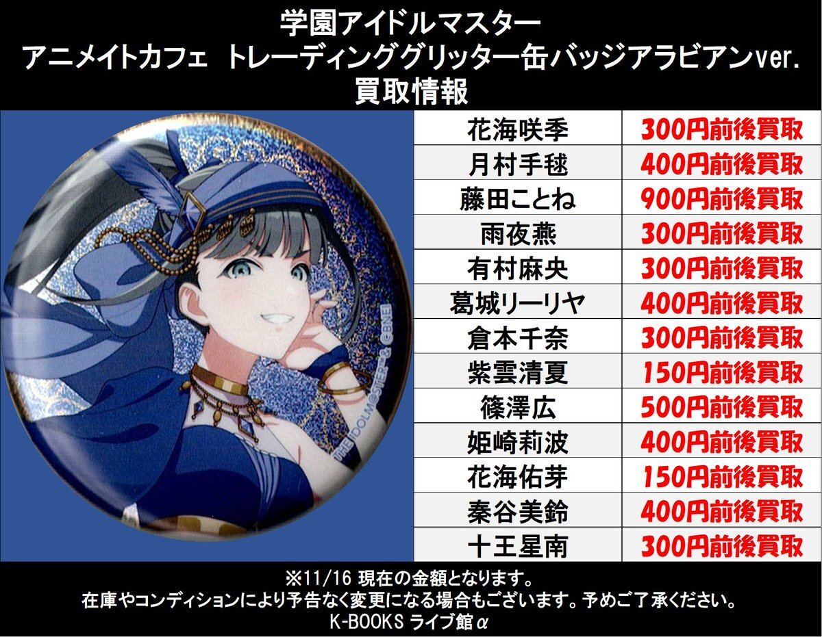 【買取情報】 学園アイドルマスター アニメイトカフェ グリッター缶バッジ アラビアンver. 募集中です! #kbooks #買取ikla学マス 池袋 ライブ館α アニカフェ 学マス 花海咲季 月村手毬 藤田ことね 雨夜燕 有村麻央 葛城リーリヤ 倉本千奈 紫雲清夏 篠澤広 十王星南 秦谷美鈴 花海佑芽 姫崎莉波 pic.x.com/1GFU6MMqB1
