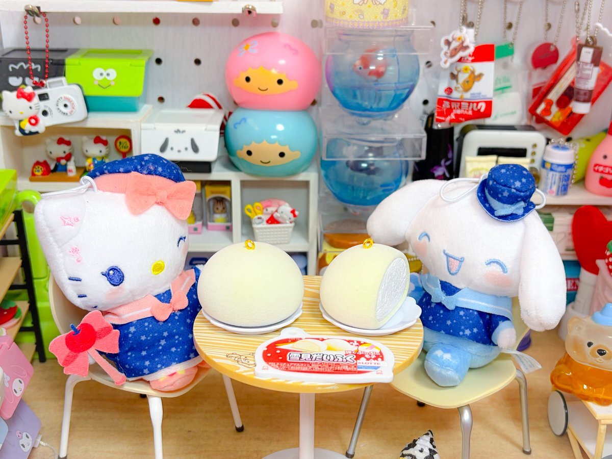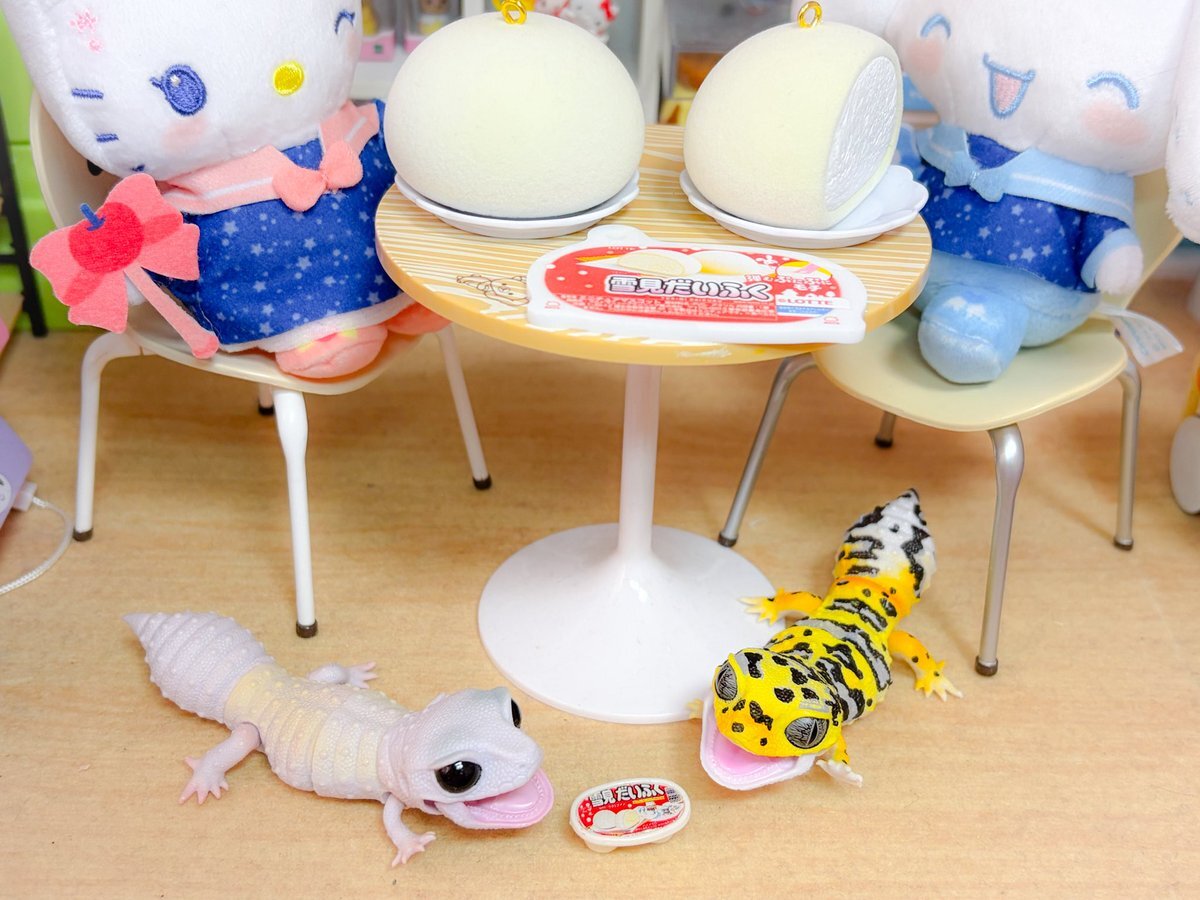 3時のおやつ🍪 11月18日は #雪見だいふくの日 ⛄️ みんな雪見だいふく食べてたよ💓 #ぬい撮り #カプキャラ #キティちゃん #シナモロール #クロミちゃん #バッドばつ丸 #ウィッシュミーメル #みんなのたあ坊 #レオパードゲッコー pic.x.com/oDT86rR4Gq