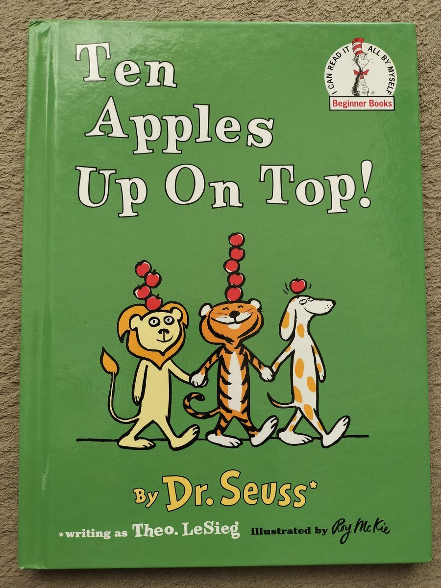 昨晩の #洋書 #読み聞かせ 久しぶりにTen Apples Up On Top! りんごをいくつ頭に乗せられるか競い合い、10個までいったけど今度はいろんなものに狙われ落とされそうに!Dr. Seussらしい韻を踏んだ文とくだらないけど笑っちゃう子供を釘付けにするストーリー。 何度読んでいても楽しめます♪ pic.x.com/P1fS7Gnmoj
