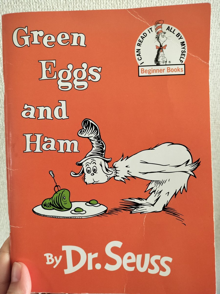 昨晩の #洋書 #読み聞かせ 久しぶりの Green Eggs and Ham 繰り返しと韻を踏んだ文、その上50語だけで作った絵本! 子供たちも大好きで途中から必ず一緒に声に出してくる😆 ほんとにあったら食べてみたい!とか、どんな味かな?など色々話しました(子供たち曰くチョコ味らしい🤣) pic.x.com/20CxD9skvV