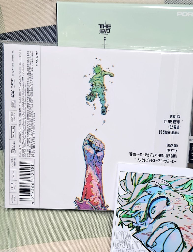 ポルノさん「THE REVO」CD ヒロアカ アニメ盤も取得しました! アニメイトにて(特典 デクくんましかくブロマイド付き) ジャケット裏面が…!こんなの、泣いてしまう…(;▽;) この場面は今週末の放送でくるはずだけど… デクくん… オールマイト… #ポルノグラフィティ #ヒロアカ #頑張れ緑谷出久 pic.x.com/sUkZPIHQam