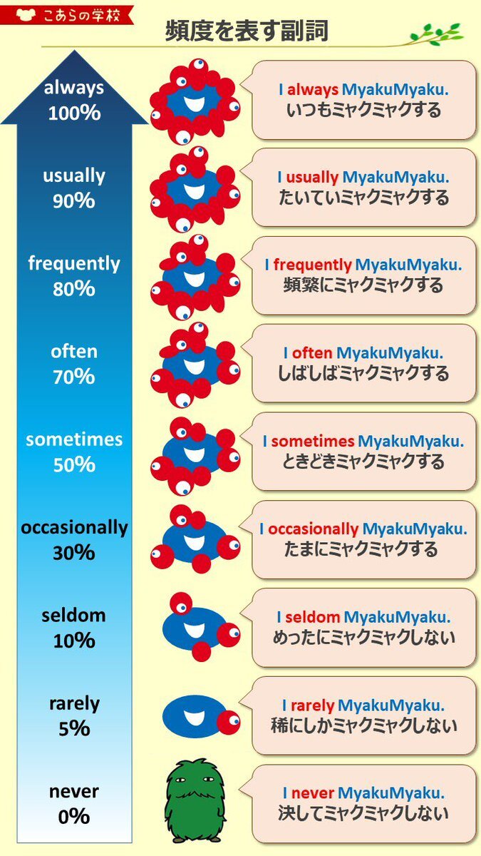 ミャクミャク様で学ぶ!頻度を表す副詞 pic.x.com/6DoRBOTIX3
