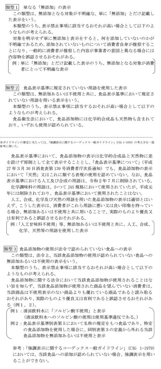 2022年3月 添加物表示 の 不使用表示 ガイドライン 「無添加」とは? 何を? 「不使用」とは? 「人工」とは? 日本うま味調味料協会 umamikyo.gr.jp/2025%E5%B9%B42… 食品添加物の不使用表示に関するガイドライン検討会 caa.go.jp/policies/polic…