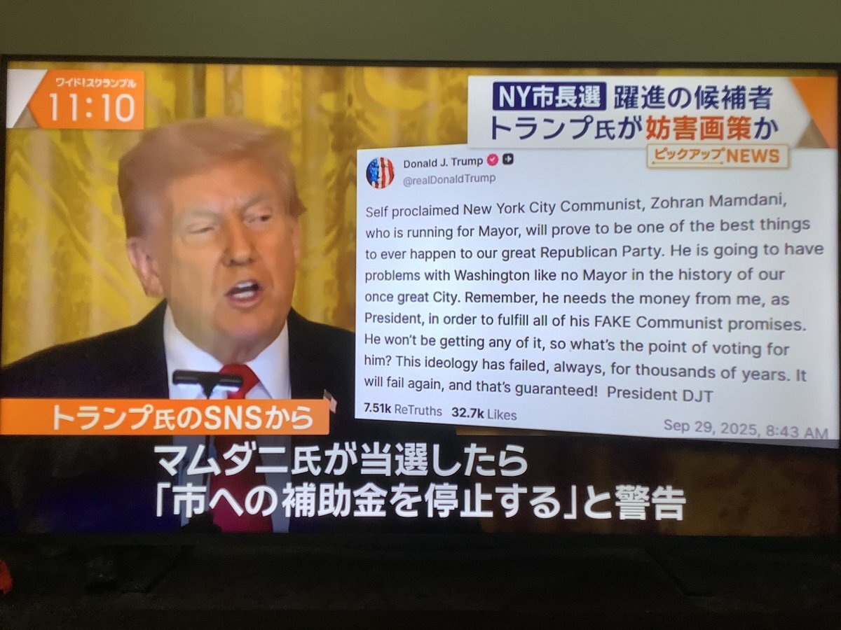 高市首相確実となったら今度はテレビでトランプ大統領批判し始めてる。 NY市長選の左派候補者がトランプに宣戦布告したのに、トランプが妨害画策かってタイトル付けるのどうなの? 高市さん期待で株価爆上げなんだから早く認めなよ。 トランプ大統領と高市首相の会談が楽しみだ。 pic.x.com/xXtWThIO4B x.com/6lejh8dcdxuhn1…
