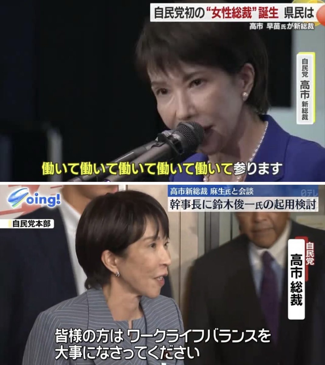 返信先:@USkabusikakatan1高市早苗自民党新総裁は2025年10月4日の両院議員総会で、「全員に馬車馬のように働いてもらう。私自身もワークライフバランスという言葉を捨てます」と発言。複数のメディア(産経、共同など)が報じており、事実確認済み。この発言は労働観をめぐり批判と擁護の声がある。