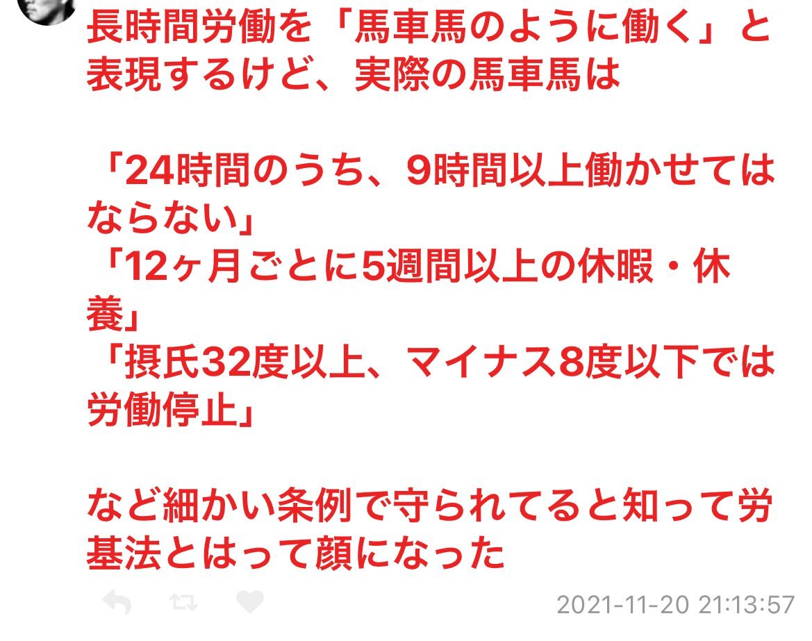 馬車馬のように働いてもらう』に対して『人間は馬ではない』なんてあまりにも愚かで阿呆で馬鹿で間抜けな言葉を返した人間がなにをいっても滑稽なだけやぞ x.com/shiikazuo/stat…