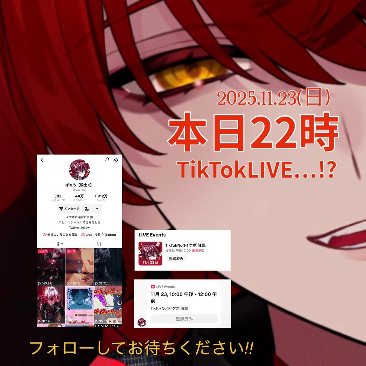 (⚆̤_ ⚆̤ ꢏ[#ばぁうくん からお知らせ ]ꢖ 本日22:00 𝐬𝐭𝐚𝐫𝐭 TikTokLIVE …!? ♥️ tiktok.com/@vau1113?_r=1&… ファンミ終わったばかりのばぁうくんに会えるかも…🥹 お時間ある方ぜひいい声聞きに来てください!! #騎士X #KnightX #歌い手 #YouTuber #STPR pic.x.com/cnbCbKFAJQ x.com/vau1113/status…