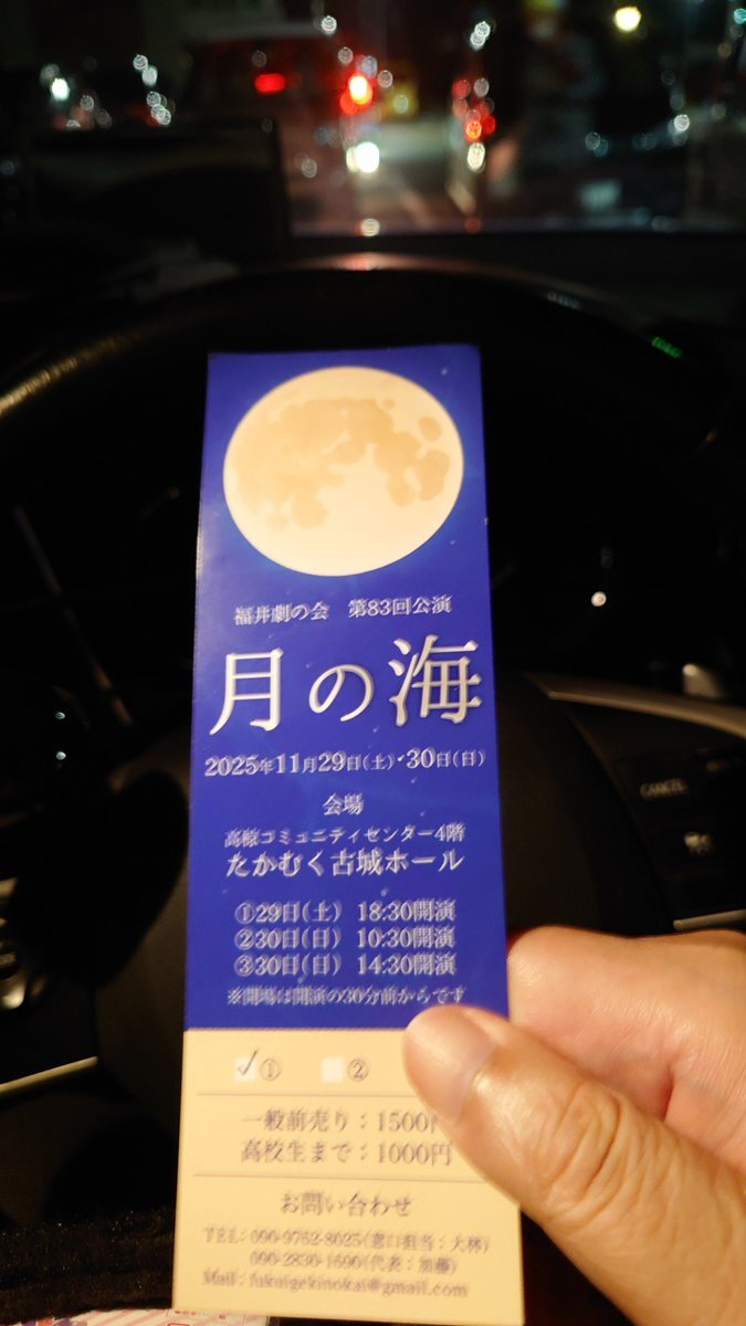 うん、劇は良いものだ。 明日の公演終了まで感想はナイショらしいので、取り敢えず良かったとだけ言っておこう。 座席案内スタッフの方が下手側の方がお勧めと言った意味が良くわかったし、そうなるように規制線が張られていた理由も納得だった。 騙されたと思ってスタッフの指示には従おう🙄 #月の海 pic.x.com/CjHdiMMDmJ