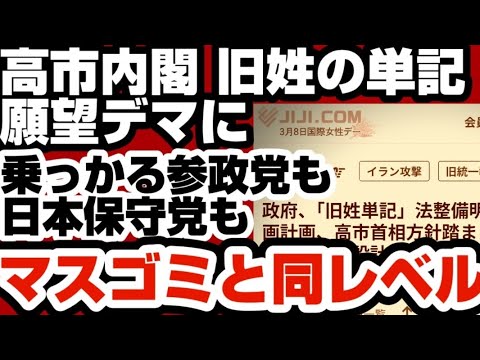 高市総理 「旧姓単記」法整備明記へ ←は? ←参政党、日本保守党も乗っかったマスゴミの願望、偏向報道でした 【高市内閣2.0】2026年3月10日 youtube.com/watch?v=0Jp1aq…