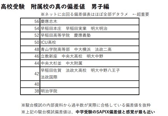 【保存推奨】 ネット上のどこにも出回っていない、高校受験の附属校の真の偏差値表です。駿台模試の実際の合否資料に基づいた最も信頼性の高いものです。中学受験のSAPIX偏差値と照らし合わせてみてください。おおよその高校受験の難度感がわかると思います。 pic.x.com/6E5pkSdK6v