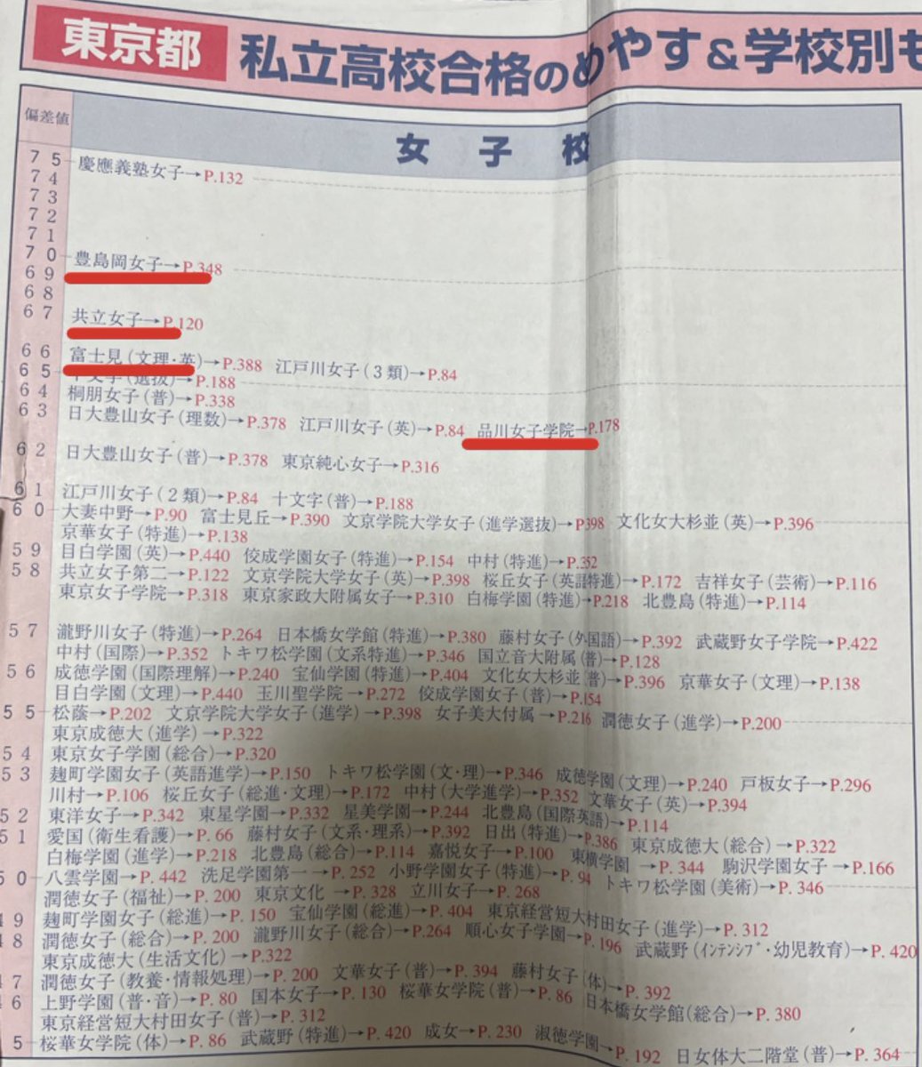 東京の私立女子高校の2003年時点の偏差値表です。(Vもぎの偏差値) 慶應女子のトップは今と変わりませんが、その次に続く、豊島岡女子、共立女子、富士見が高校受験停止。 高校受験から入る上位の女子校が少なくなったことが分かります。 ameblo.jp/winningticket-… pic.x.com/mULJfgMkYT