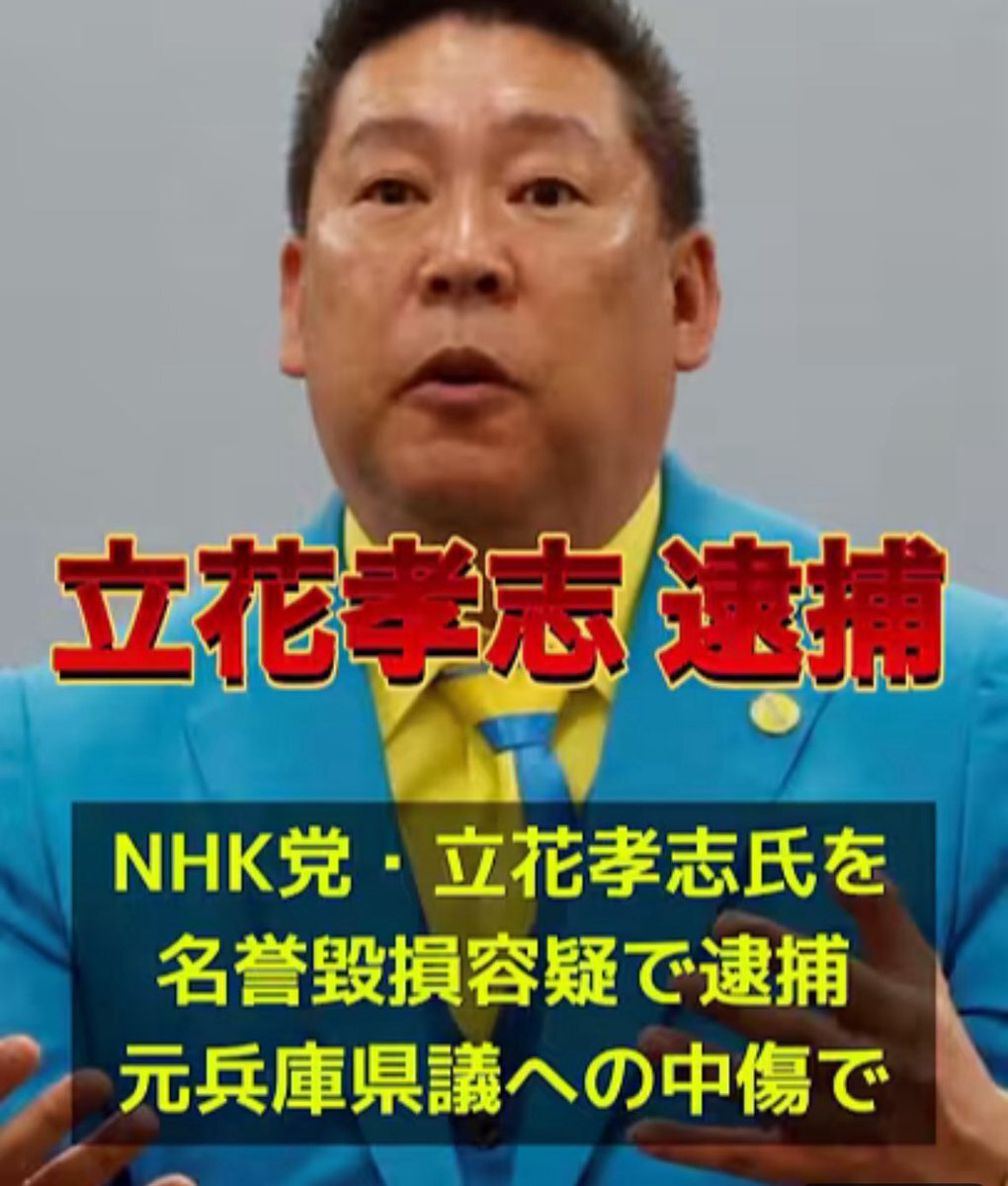 🚨反社会的カルト集団NHK党党首の立花孝志が逮捕されました ✅二馬力選挙を行なった斎藤元彦も同罪 ✅怪文書を渡した躍動の会も同罪 ✅ネットでデマ拡散、誹謗中傷した奴らも同罪 ✅現在に至るまで齊藤健一郎を自民会派入させた参議院自民も同罪 #立花孝志逮捕 x.com/i/trending/198… pic.x.com/yMbOxHpTCx