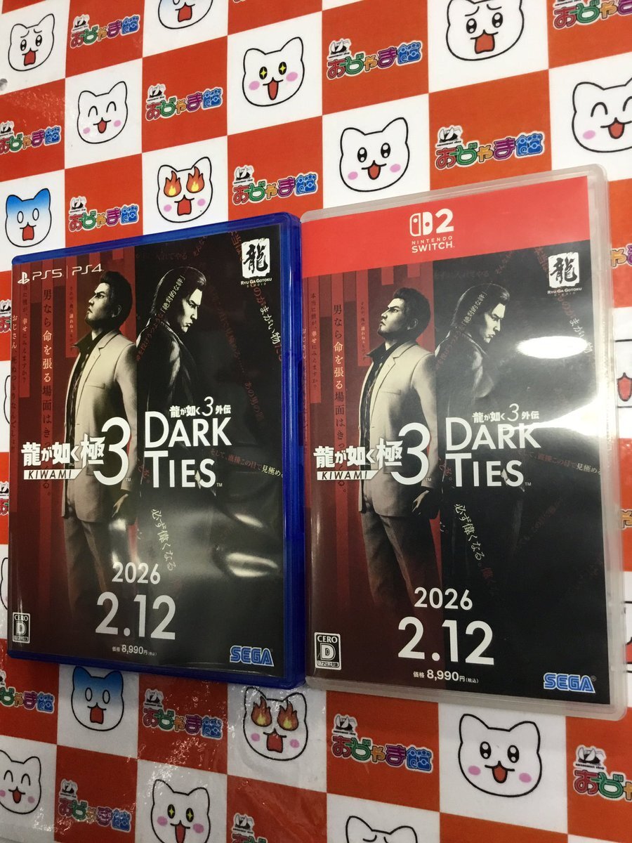 ⭐️予約受付中‼︎⭐️ #PS4 #PS5 #Switch2 ✅ 『龍が如く 極3 / 龍が如く3外伝 Dark Ties』 「桐生一馬」「峯義孝」主人公の2作品がこの一本で‼️ 沖縄、東京の街並みや バトルアクションやドラマシーンが更に進化! ご予約はお気軽に店頭スタッフまで‼︎✨ pic.x.com/kggbzuzc0I